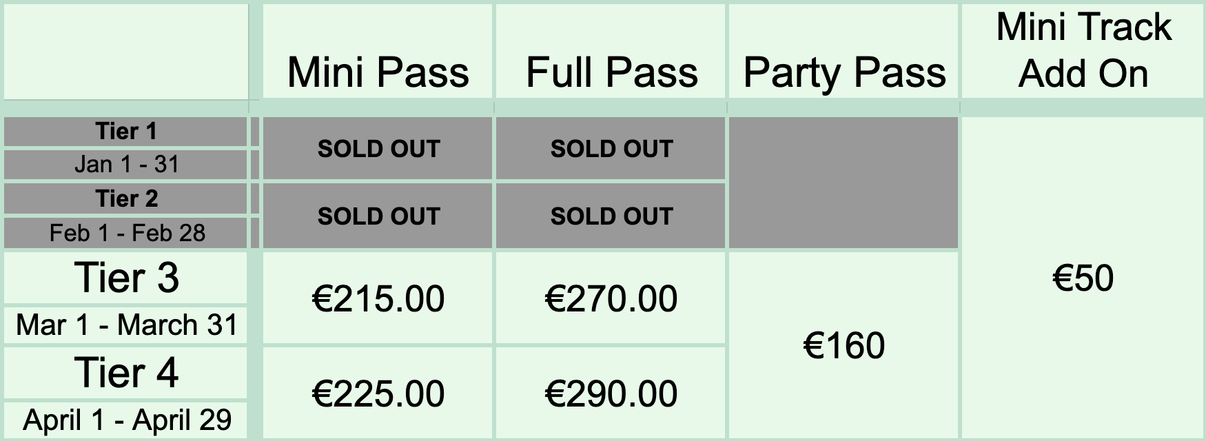 Can be added to Main or Mini Passes